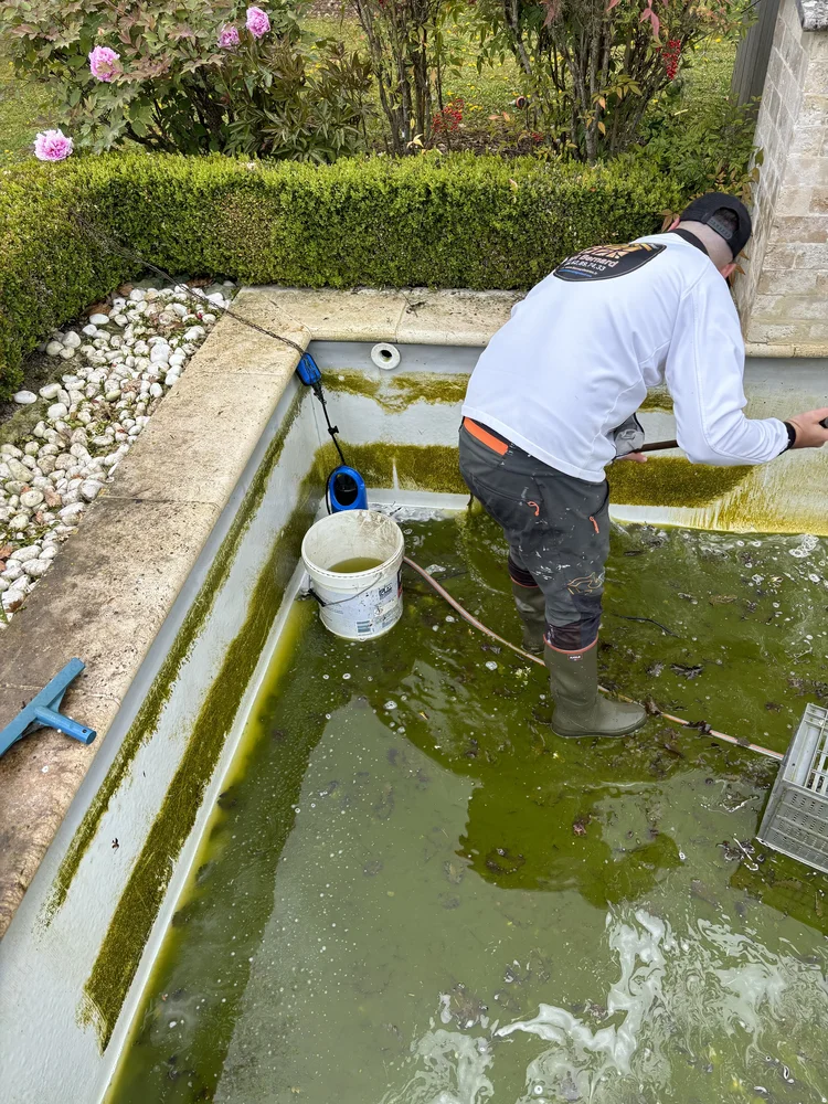 - Nettoyage en profondeur du liner pour éliminer les algues et les dépôts de calcaire.